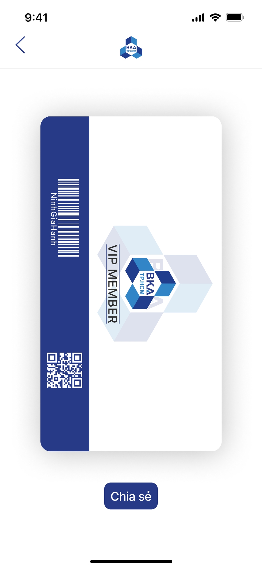 ở menu, vào trang cá nhân, nhấn vào Thẻ của tôi, QR code trên thẻ có thể share cho bạn bè để quét mã để truy cập vào trang Profile của chủ Card.
