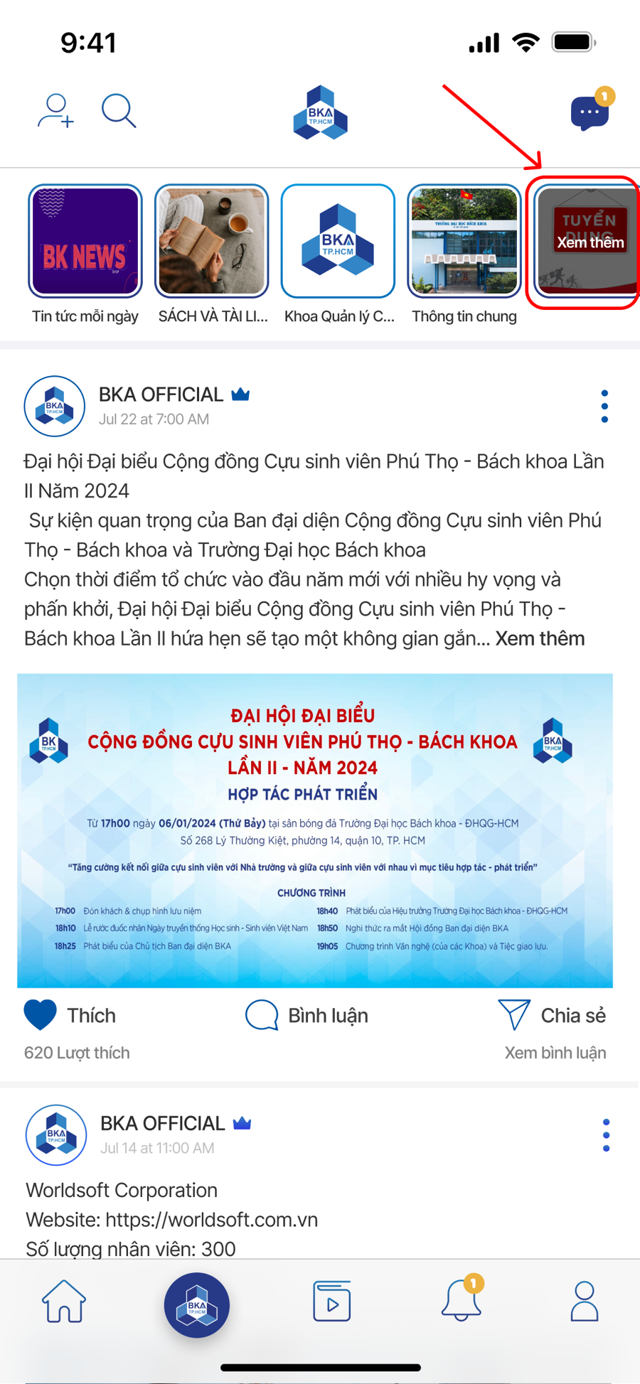 Đến tường chung (nhấn Logo ở thanh navbar).